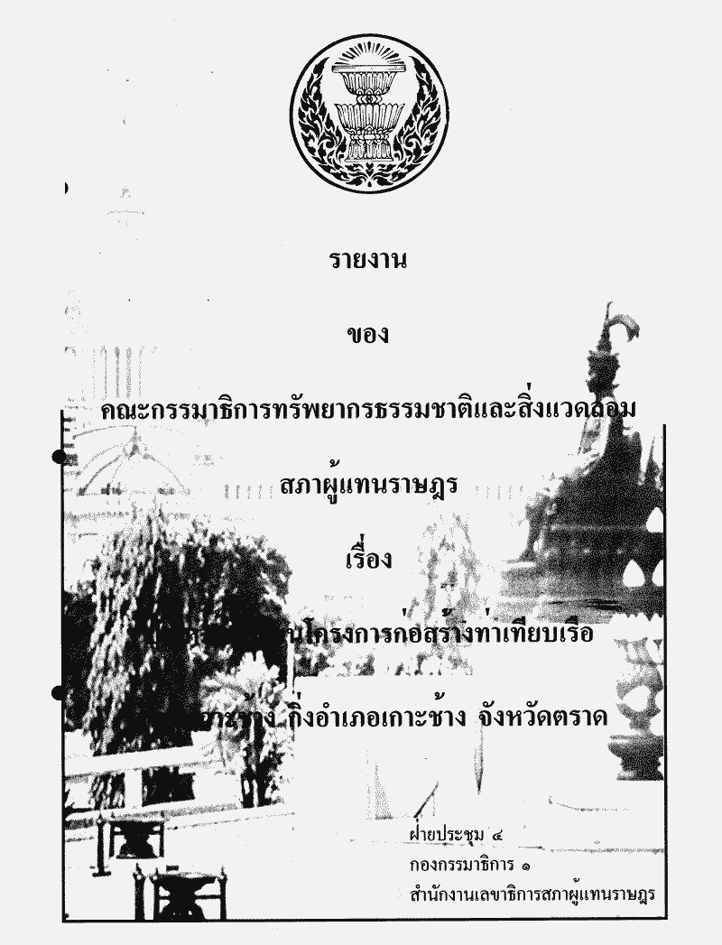 รายงานผลการพิจารณาปัญหาร้องเรียนโครงการก่อสร้างท่าเทียบเรือ ตำบลเกาะช้าง กิ่งอำเภอเกาะช้าง จังหวัดตราด ซึ่งคณะกรรมาธิการการทรัพยากรธรรมชาติและสิ่งแวดล้อมพิจารณาเสร็จแล้ว