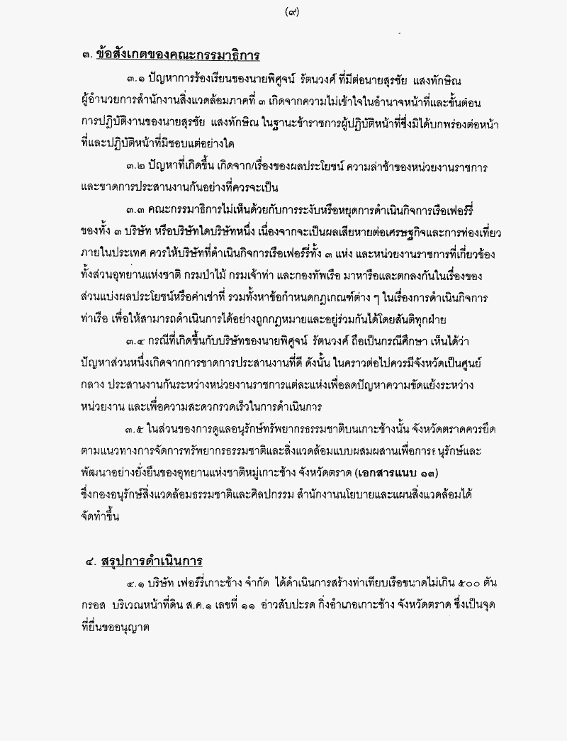 รายงานผลการพิจารณาปัญหาร้องเรียนโครงการก่อสร้างท่าเทียบเรือ ตำบลเกาะช้าง กิ่งอำเภอเกาะช้าง จังหวัดตราด ซึ่งคณะกรรมาธิการการทรัพยากรธรรมชาติและสิ่งแวดล้อมพิจารณาเสร็จแล้ว