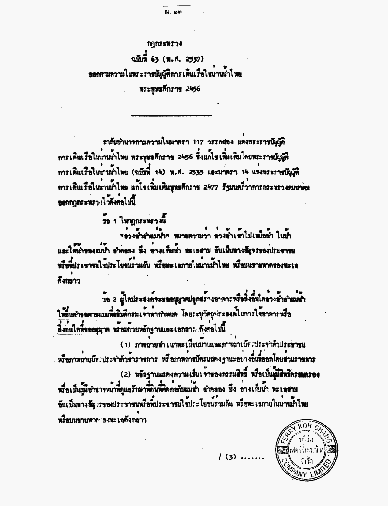 รายงานผลการพิจารณาปัญหาร้องเรียนโครงการก่อสร้างท่าเทียบเรือ ตำบลเกาะช้าง กิ่งอำเภอเกาะช้าง จังหวัดตราด ซึ่งคณะกรรมาธิการการทรัพยากรธรรมชาติและสิ่งแวดล้อมพิจารณาเสร็จแล้ว