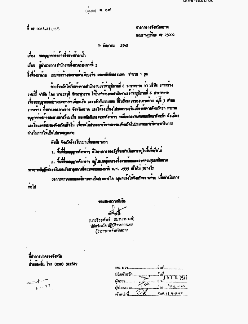 รายงานผลการพิจารณาปัญหาร้องเรียนโครงการก่อสร้างท่าเทียบเรือ ตำบลเกาะช้าง กิ่งอำเภอเกาะช้าง จังหวัดตราด ซึ่งคณะกรรมาธิการการทรัพยากรธรรมชาติและสิ่งแวดล้อมพิจารณาเสร็จแล้ว
