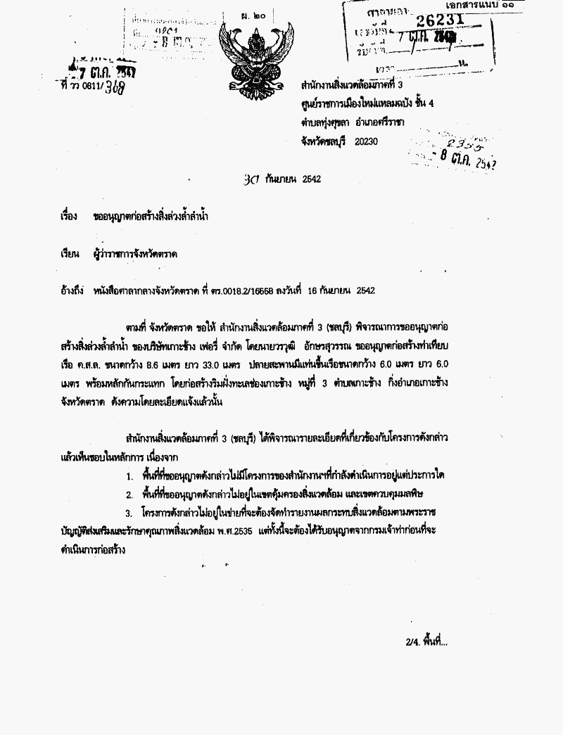รายงานผลการพิจารณาปัญหาร้องเรียนโครงการก่อสร้างท่าเทียบเรือ ตำบลเกาะช้าง กิ่งอำเภอเกาะช้าง จังหวัดตราด ซึ่งคณะกรรมาธิการการทรัพยากรธรรมชาติและสิ่งแวดล้อมพิจารณาเสร็จแล้ว