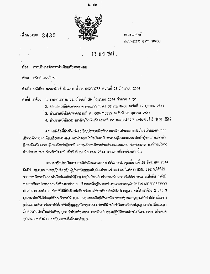 รายงานผลการพิจารณาปัญหาร้องเรียนโครงการก่อสร้างท่าเทียบเรือ ตำบลเกาะช้าง กิ่งอำเภอเกาะช้าง จังหวัดตราด ซึ่งคณะกรรมาธิการการทรัพยากรธรรมชาติและสิ่งแวดล้อมพิจารณาเสร็จแล้ว