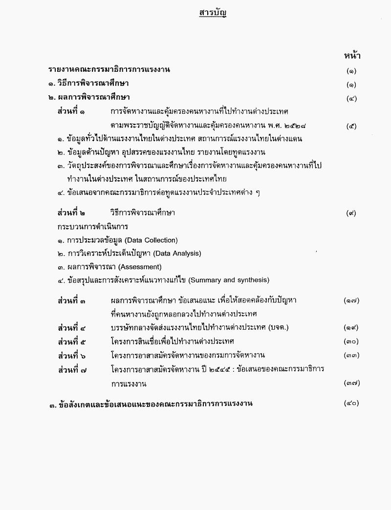 รายงานผลการพิจารณาศึกษาเรื่องการจัดหางานและคุ้มครองคนหางานที่ไปทำงานต่างประเทศ ซึ่งคณะกรรมาธิการการแรงงานพิจารณาเสร็จแล้ว
