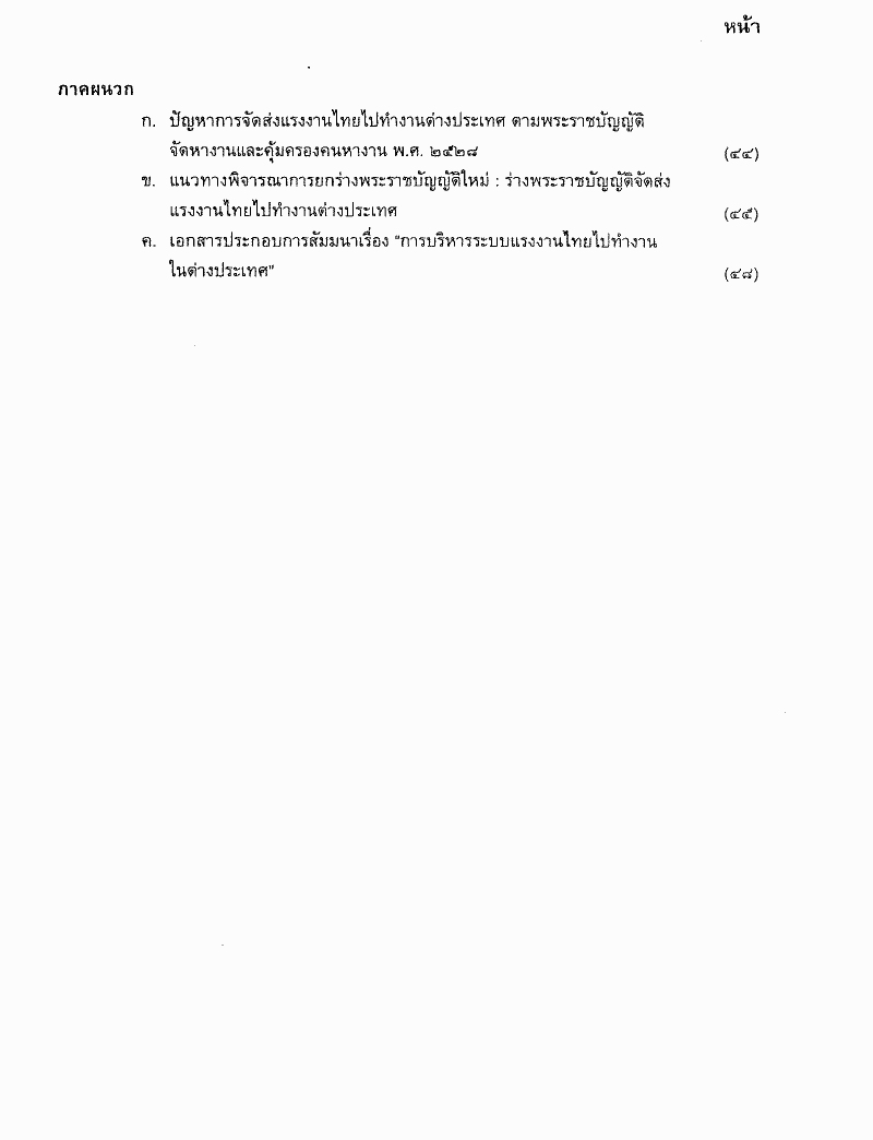 รายงานผลการพิจารณาศึกษาเรื่องการจัดหางานและคุ้มครองคนหางานที่ไปทำงานต่างประเทศ ซึ่งคณะกรรมาธิการการแรงงานพิจารณาเสร็จแล้ว
