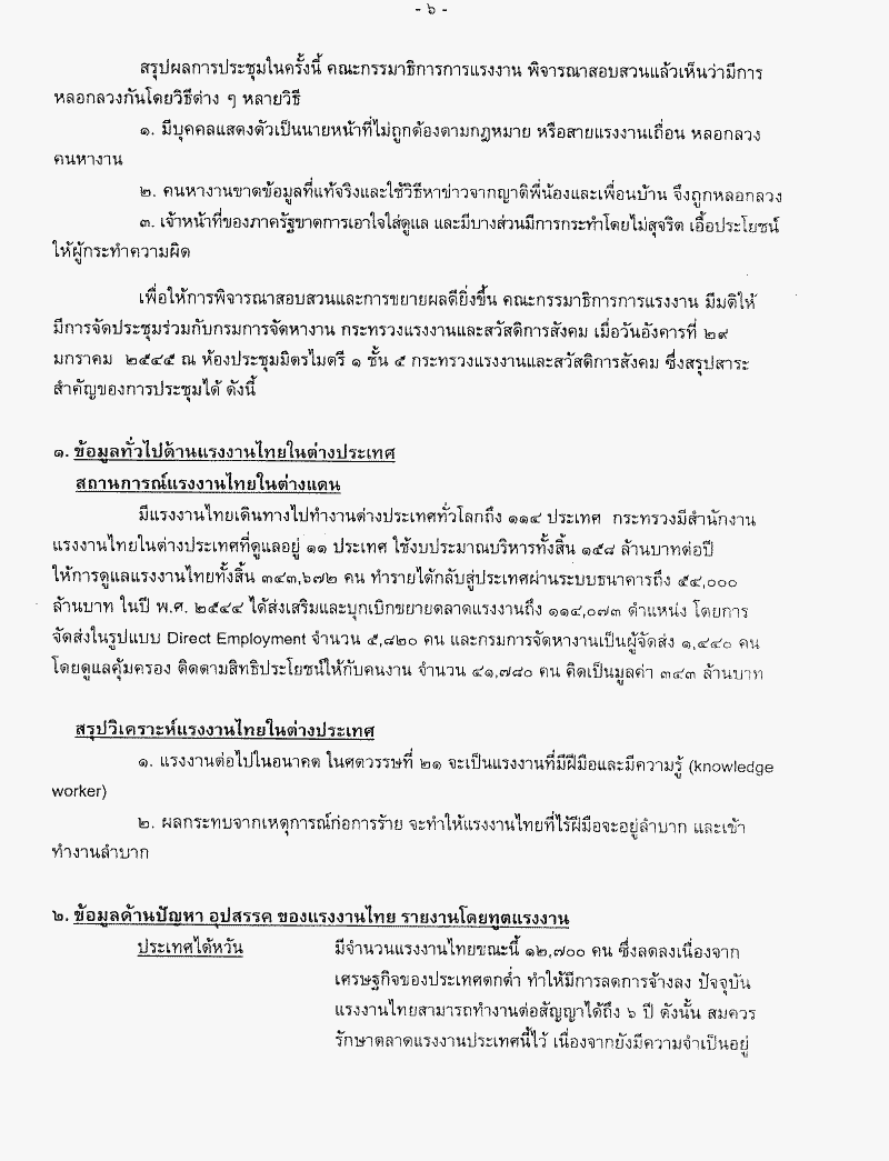 รายงานผลการพิจารณาศึกษาเรื่องการจัดหางานและคุ้มครองคนหางานที่ไปทำงานต่างประเทศ ซึ่งคณะกรรมาธิการการแรงงานพิจารณาเสร็จแล้ว