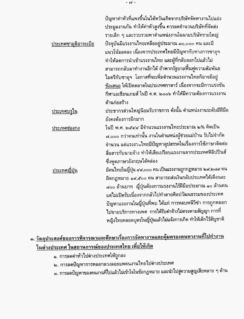 รายงานผลการพิจารณาศึกษาเรื่องการจัดหางานและคุ้มครองคนหางานที่ไปทำงานต่างประเทศ ซึ่งคณะกรรมาธิการการแรงงานพิจารณาเสร็จแล้ว