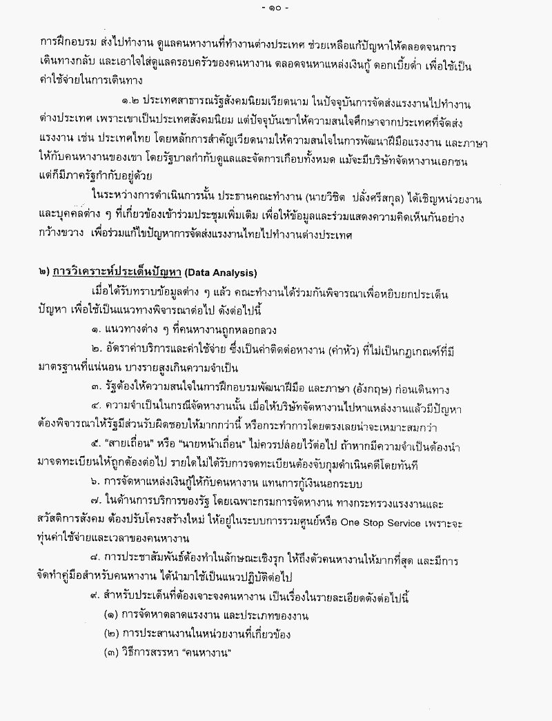 รายงานผลการพิจารณาศึกษาเรื่องการจัดหางานและคุ้มครองคนหางานที่ไปทำงานต่างประเทศ ซึ่งคณะกรรมาธิการการแรงงานพิจารณาเสร็จแล้ว
