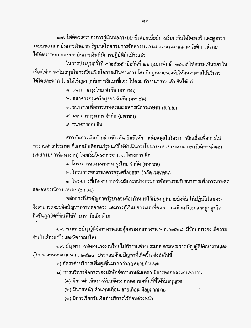รายงานผลการพิจารณาศึกษาเรื่องการจัดหางานและคุ้มครองคนหางานที่ไปทำงานต่างประเทศ ซึ่งคณะกรรมาธิการการแรงงานพิจารณาเสร็จแล้ว