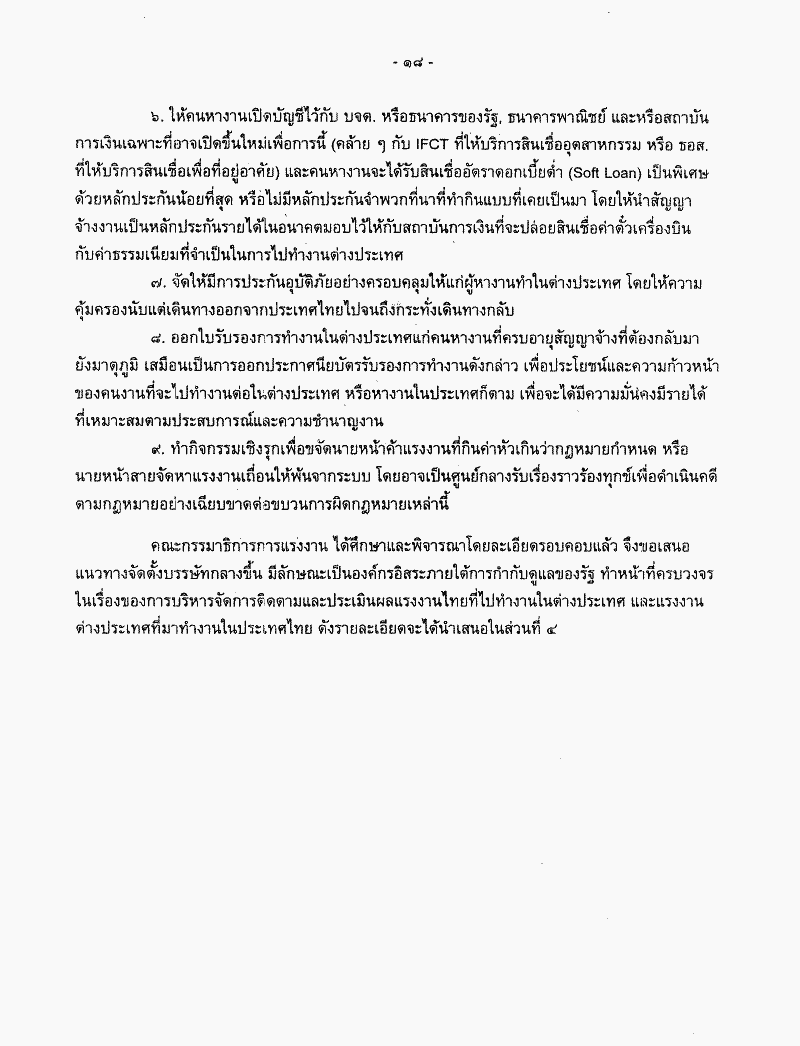 รายงานผลการพิจารณาศึกษาเรื่องการจัดหางานและคุ้มครองคนหางานที่ไปทำงานต่างประเทศ ซึ่งคณะกรรมาธิการการแรงงานพิจารณาเสร็จแล้ว