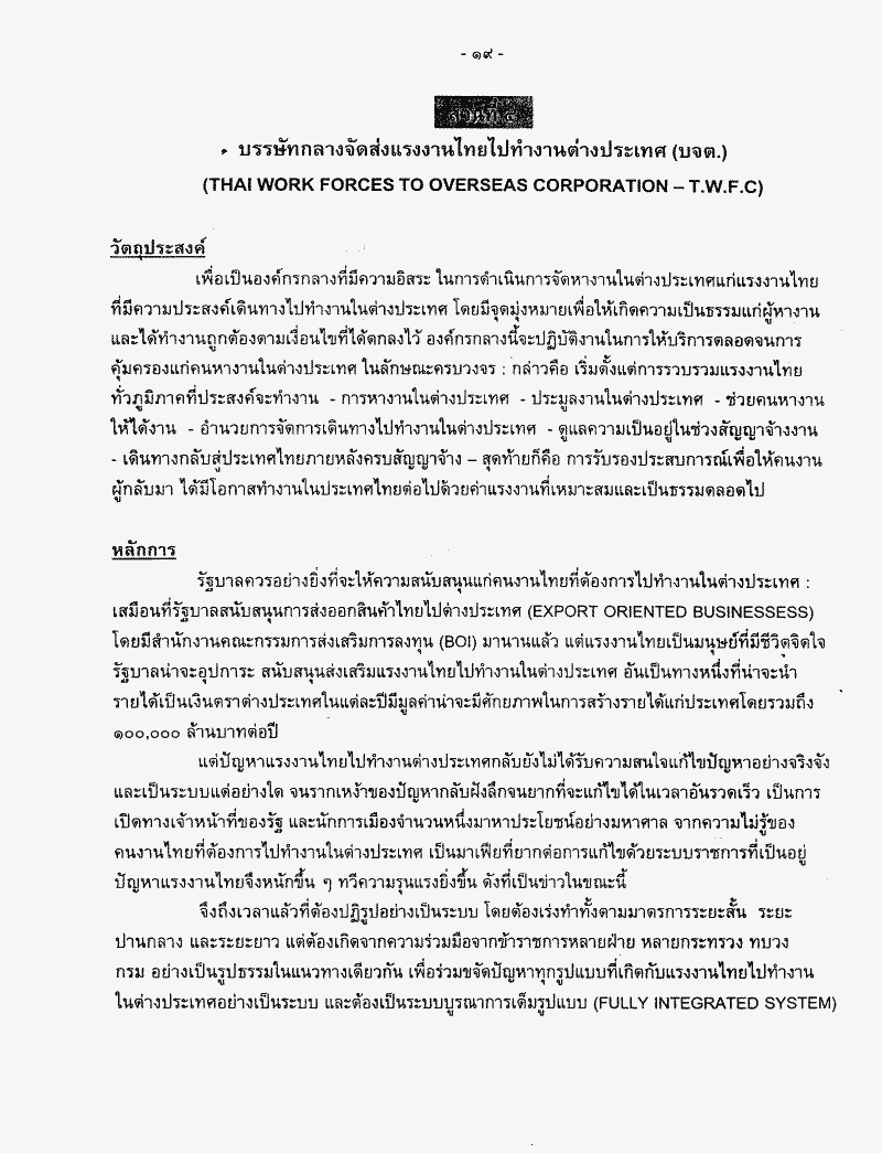 รายงานผลการพิจารณาศึกษาเรื่องการจัดหางานและคุ้มครองคนหางานที่ไปทำงานต่างประเทศ ซึ่งคณะกรรมาธิการการแรงงานพิจารณาเสร็จแล้ว