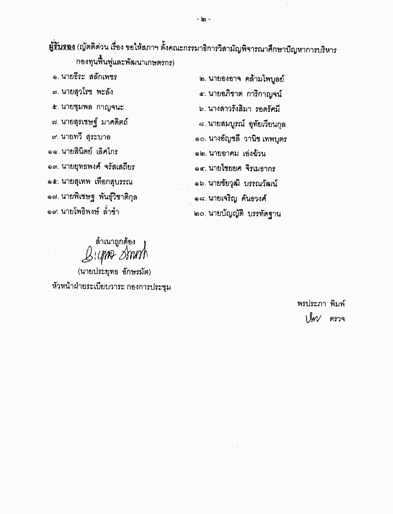 ขอเสนอญัตติด่วน เรื่อง ขอให้สภาฯ ตั้งคณะกรรมาธิการวิสามัญพิจารณาศึกษา ปัญหาการบริหารกองทุนฟื้นฟูและพัฒนาเกษตรกร |