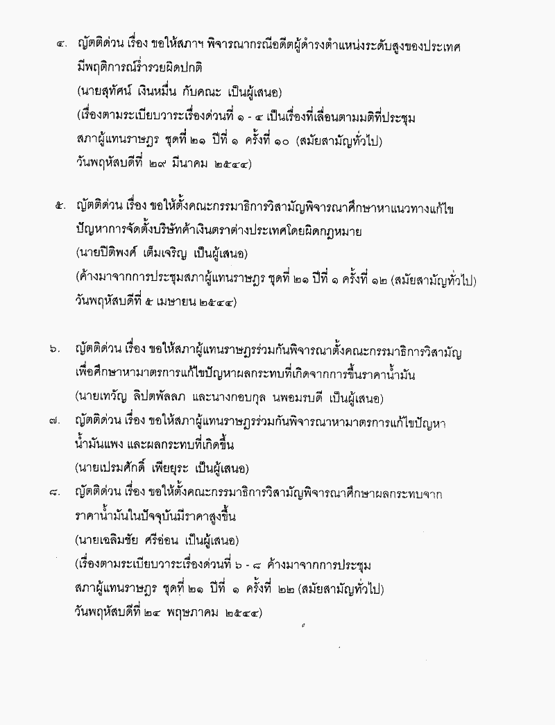 ระเบียบวาระการประชุมสภาผู้แทนราษฎร > ชุดที่ 21 > ปีที่ 2 > สมัยสามัญทั่วไป > ครั้งที่ 31