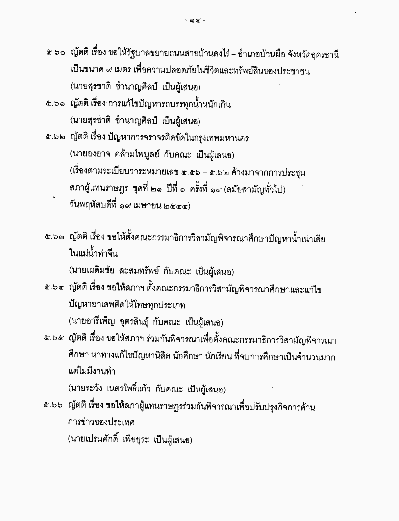 ระเบียบวาระการประชุมสภาผู้แทนราษฎร > ชุดที่ 21 > ปีที่ 2 > สมัยสามัญทั่วไป > ครั้งที่ 31