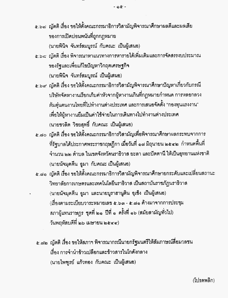 ระเบียบวาระการประชุมสภาผู้แทนราษฎร > ชุดที่ 21 > ปีที่ 2 > สมัยสามัญทั่วไป > ครั้งที่ 31