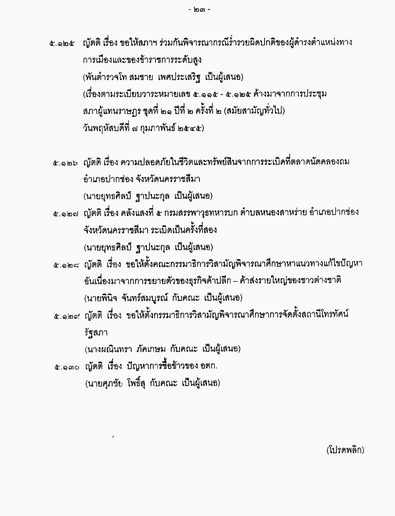 ระเบียบวาระการประชุมสภาผู้แทนราษฎร > ชุดที่ 21 > ปีที่ 2 > สมัยสามัญทั่วไป > ครั้งที่ 31
