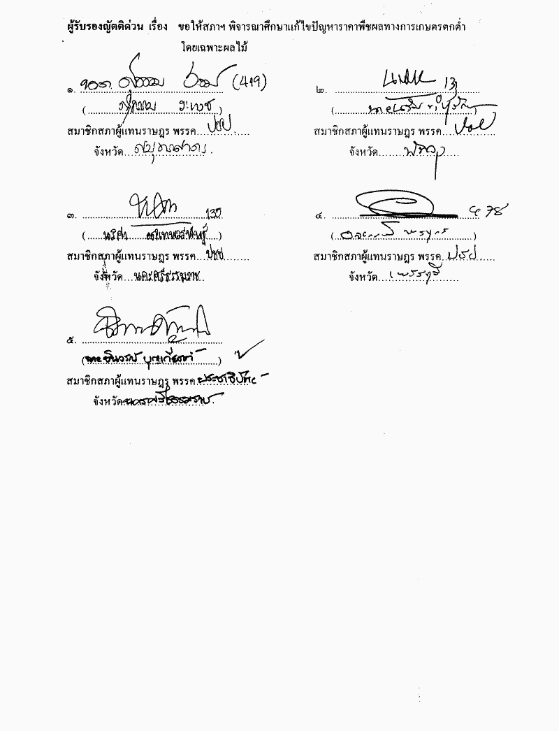 ขอเสนอญัตติด่วน เรื่อง ขอให้สภาฯ พิจารณาศึกษาแก้ไขปัญหาราคาพืชผลทางการเกษตรโดยเฉพาะผลไม้ราคาตกต่ำ |