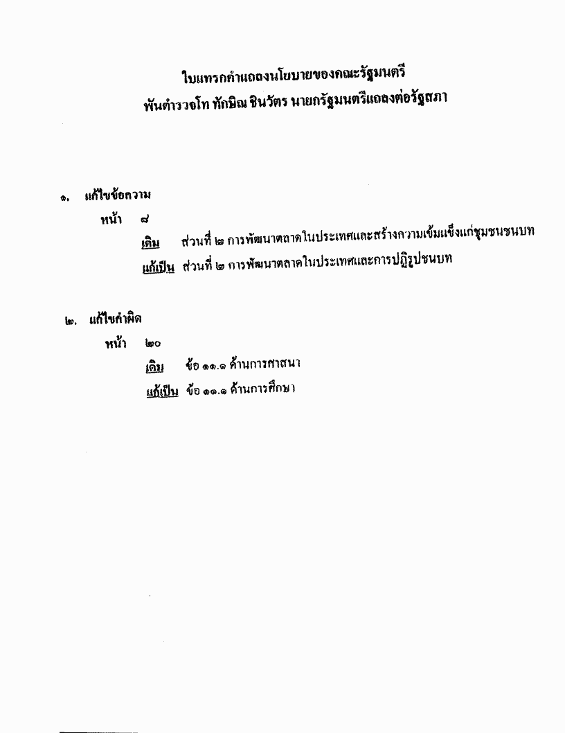 ชื่อเอกสาร :   การแถลงนโยบายของคณะรัฐมนตรีแถลงต่อรัฐสภา