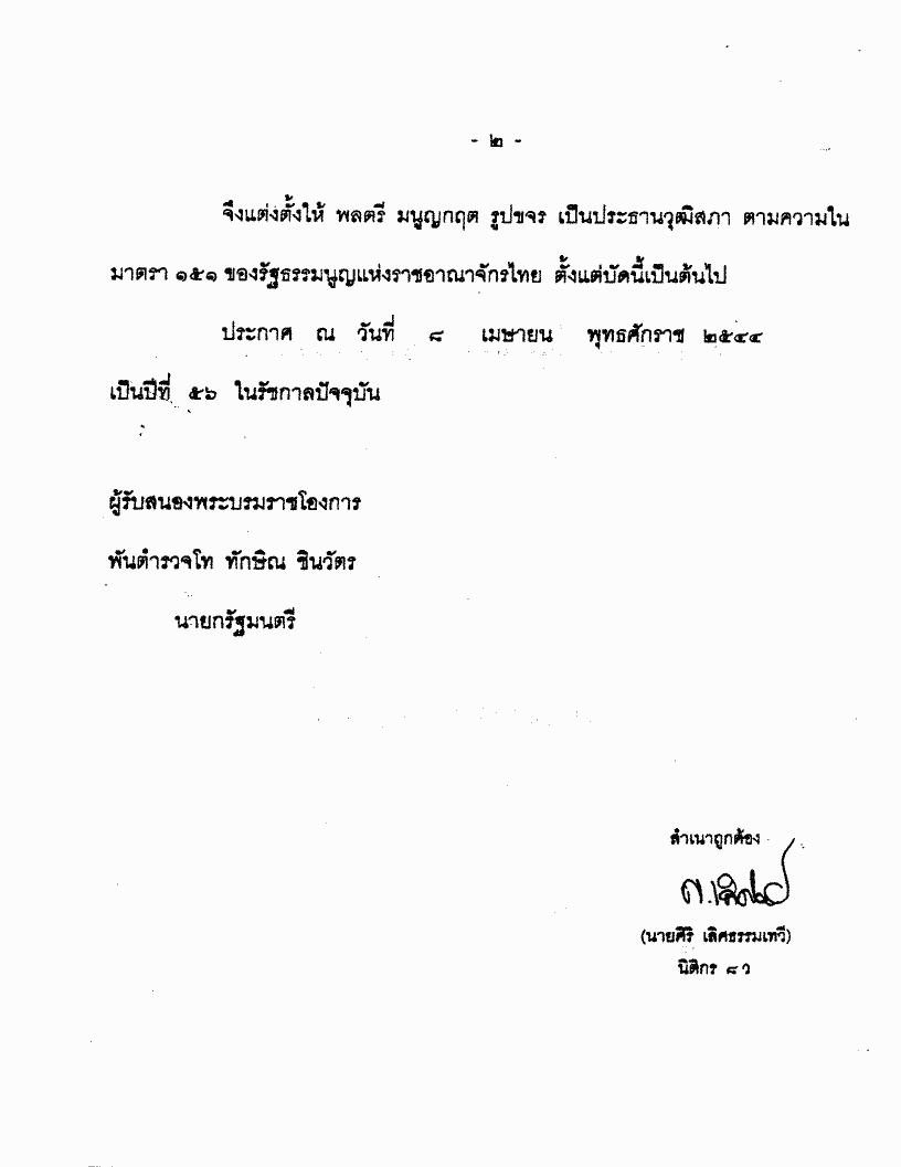 ประกาศ แต่งตั้งประธานวุฒิสภา