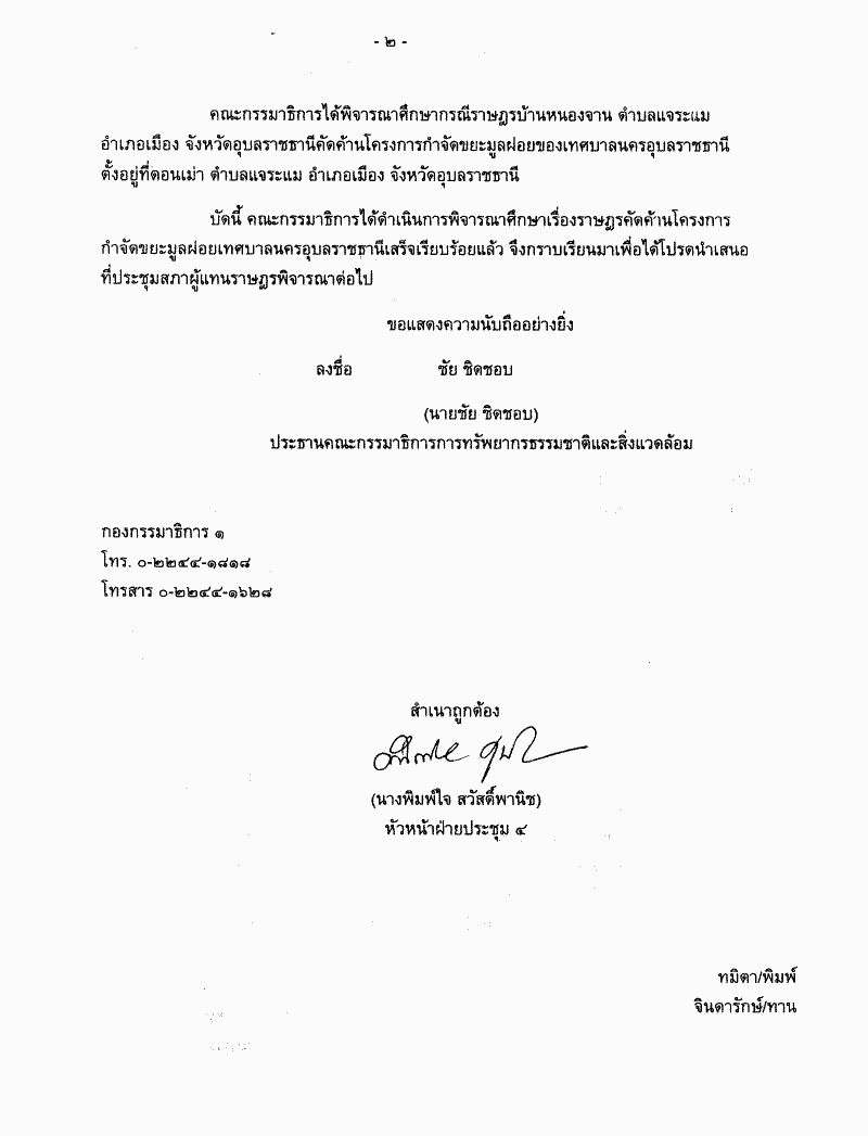 รายงานผลการพิจารณาศึกษาเรื่องราษฎรคัดค้านโครงการกำจัดขยะมูลฝอยเทศบาลนครอุบลราชธานี