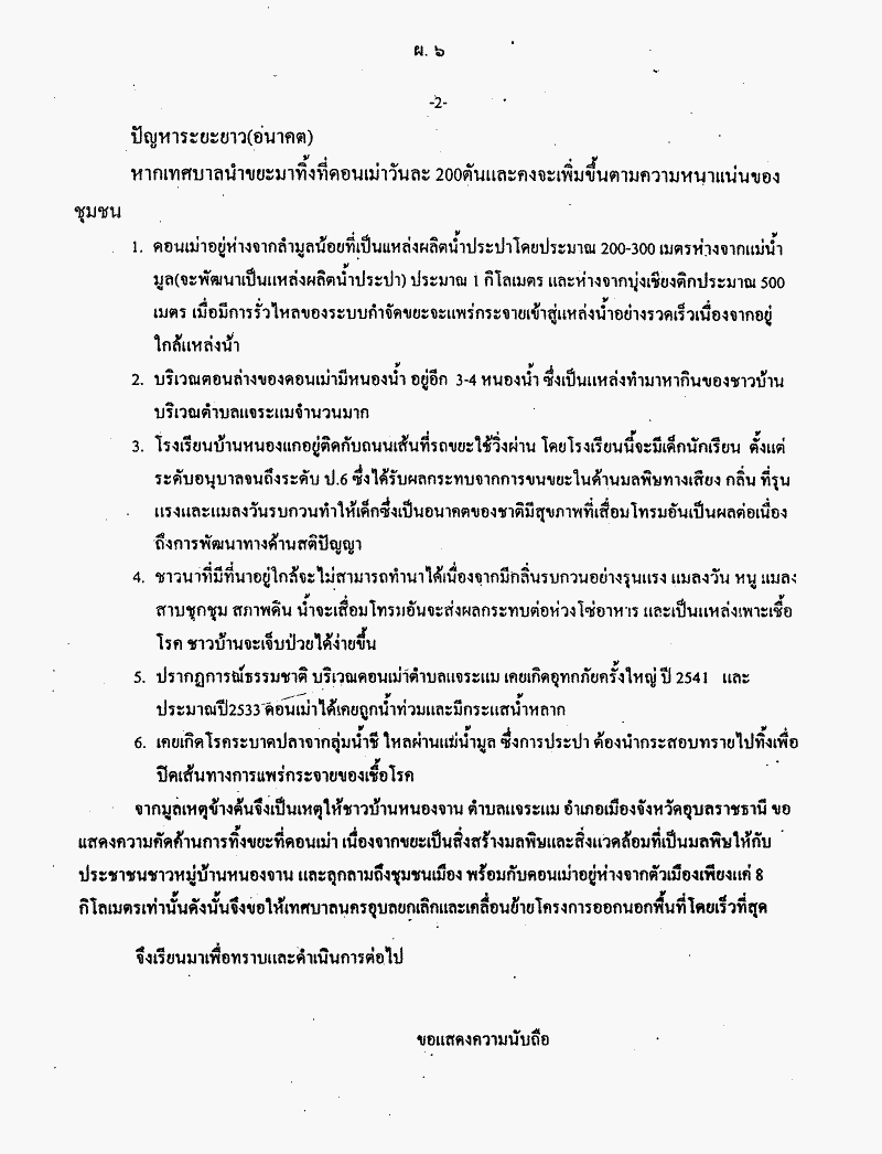 รายงานผลการพิจารณาศึกษาเรื่องราษฎรคัดค้านโครงการกำจัดขยะมูลฝอยเทศบาลนครอุบลราชธานี