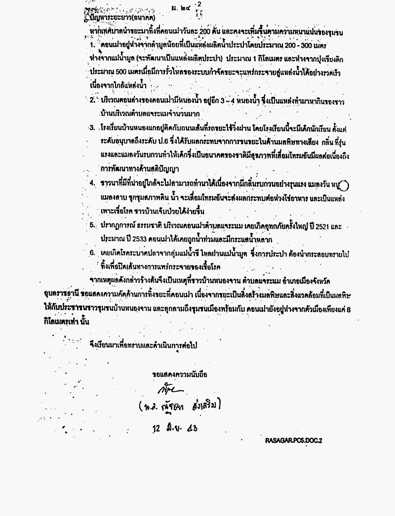 รายงานผลการพิจารณาศึกษาเรื่องราษฎรคัดค้านโครงการกำจัดขยะมูลฝอยเทศบาลนครอุบลราชธานี