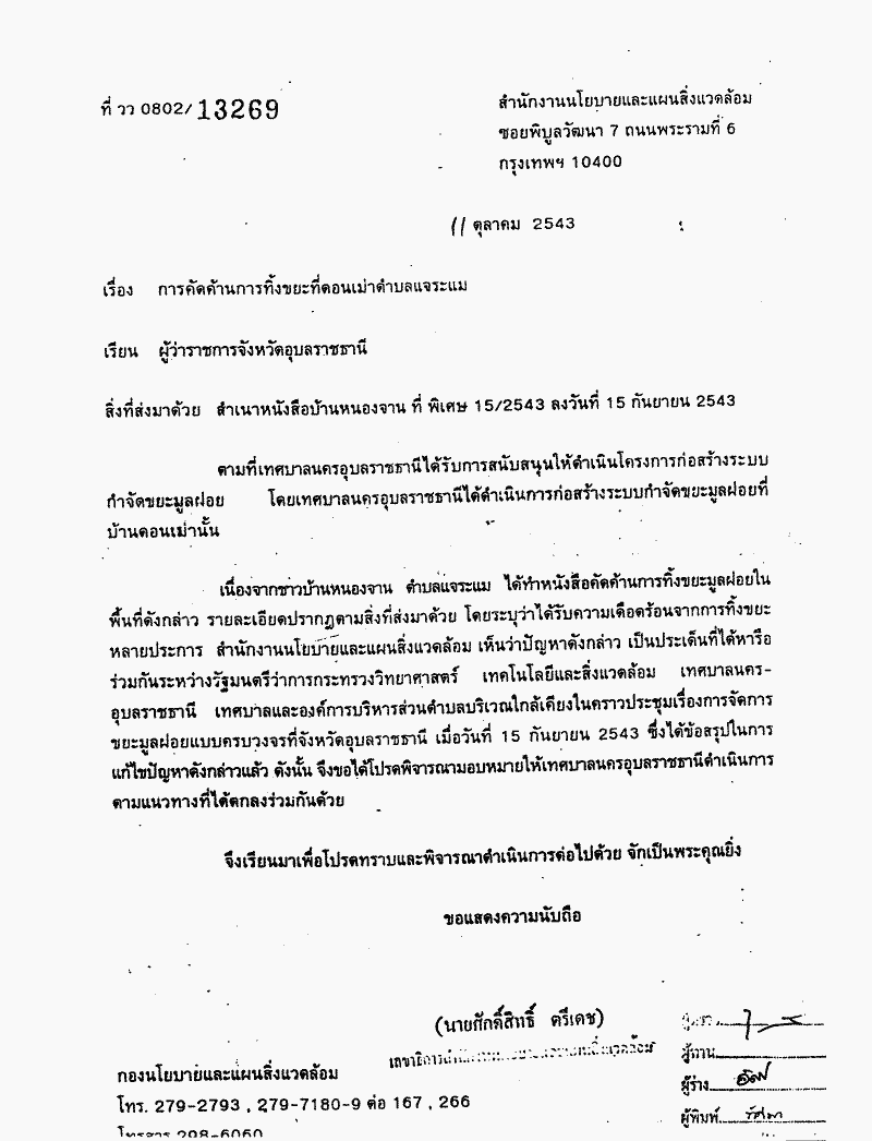 รายงานผลการพิจารณาศึกษาเรื่องราษฎรคัดค้านโครงการกำจัดขยะมูลฝอยเทศบาลนครอุบลราชธานี