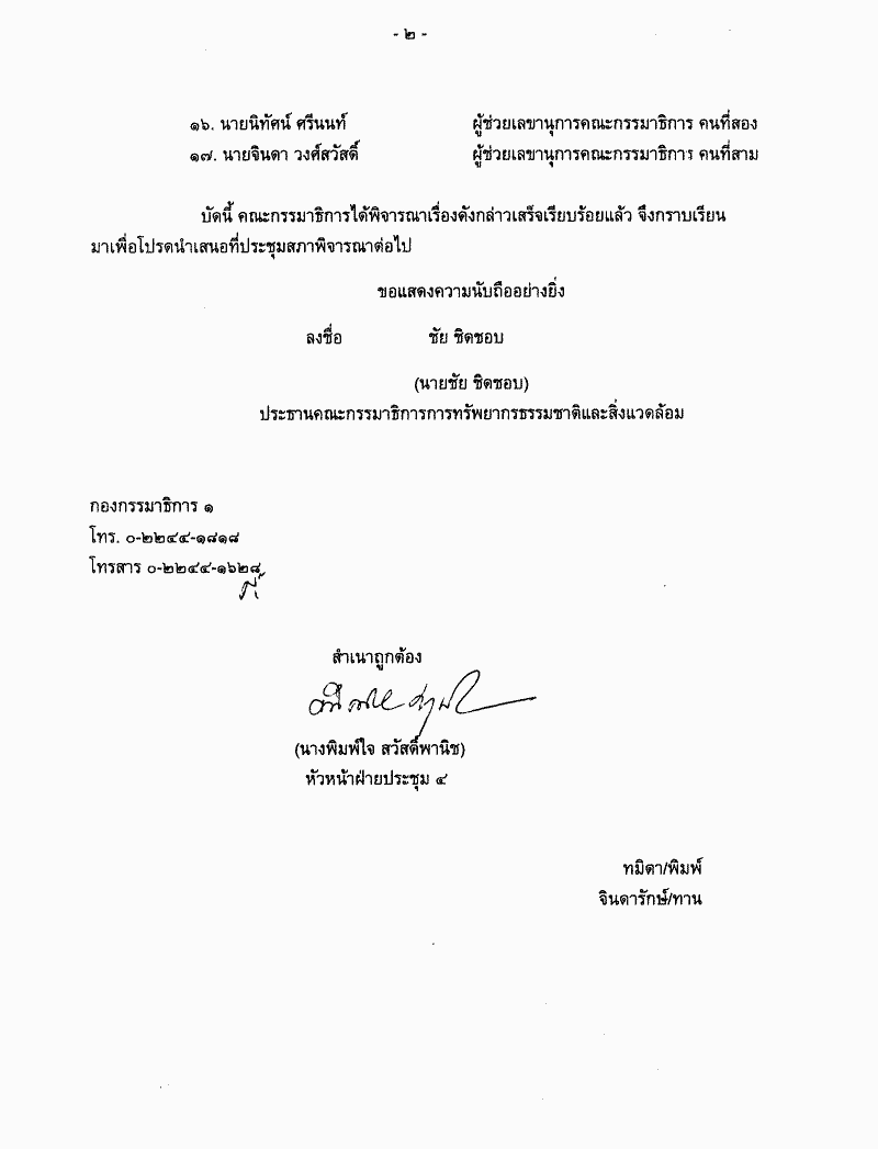 รายงานผลการพิจารณาศึกษาของคณะกรรมาธิการการทรัพยากรธรรมชาติ
