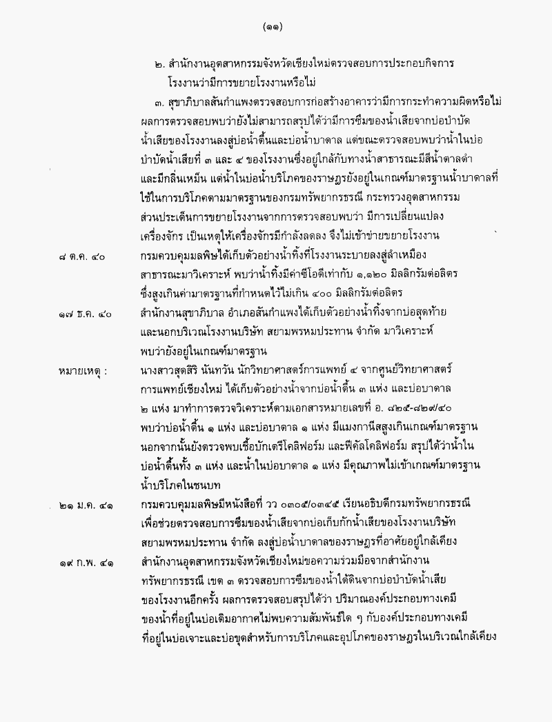 รายงานผลการพิจารณาศึกษาปัญหาความเดือดร้อนของราษฎรอำเภอสันกำแพง จังหวัดเชียงใหม่ จากการปล่อยน้ำเสียของโรงงานบริษัท สยามพรหมประทาน จำกัด ซึ่งคณะกรรมาธิการการทรัพยากรธรรมชาติและสิ่งแวดล้อมพิจารณาเสร็จแล้ว