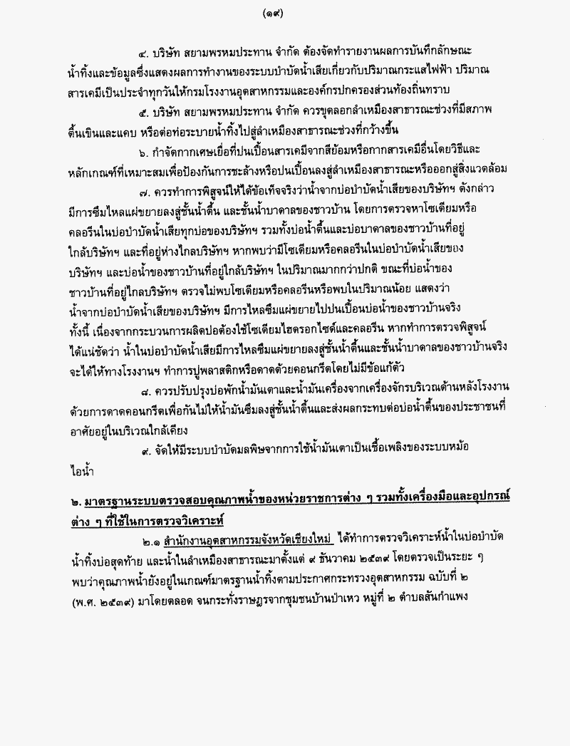 รายงานผลการพิจารณาศึกษาปัญหาความเดือดร้อนของราษฎรอำเภอสันกำแพง จังหวัดเชียงใหม่ จากการปล่อยน้ำเสียของโรงงานบริษัท สยามพรหมประทาน จำกัด ซึ่งคณะกรรมาธิการการทรัพยากรธรรมชาติและสิ่งแวดล้อมพิจารณาเสร็จแล้ว