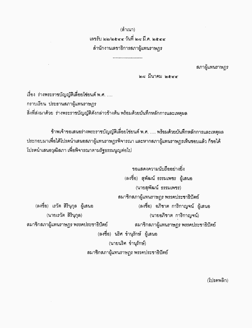 ชื่อเอกสาร :   ๖.๕ ร่างพระราชบัญญัติเลื่อยโซ่ยนต์ พ.ศ. .... (นายสุพัฒน์ ธรรมเพชร กับคณะ เป็นผู้เสนอ)