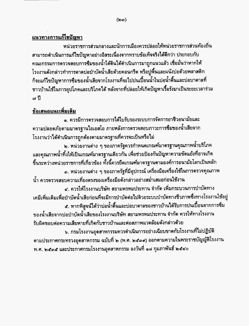 รายงานผลการพิจารณาศึกษาปัญหาความเดือดร้อนของราษฎรอำเภอสันกำแพง จังหวัดเชียงใหม่ จากการปล่อยน้ำเสียของโรงงานบริษัท สยามพรหมประทาน จำกัด ซึ่งคณะกรรมาธิการการทรัพยากรธรรมชาติและสิ่งแวดล้อมพิจารณาเสร็จแล้ว