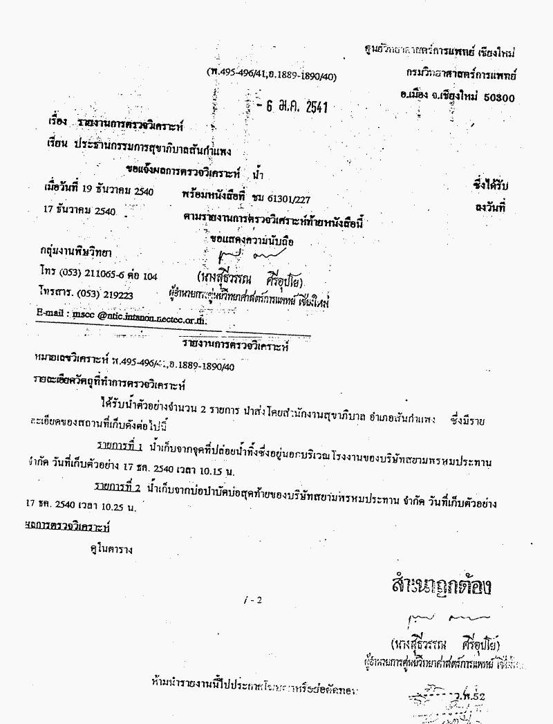 รายงานผลการพิจารณาศึกษาปัญหาความเดือดร้อนของราษฎรอำเภอสันกำแพง จังหวัดเชียงใหม่ จากการปล่อยน้ำเสียของโรงงานบริษัท สยามพรหมประทาน จำกัด ซึ่งคณะกรรมาธิการการทรัพยากรธรรมชาติและสิ่งแวดล้อมพิจารณาเสร็จแล้ว