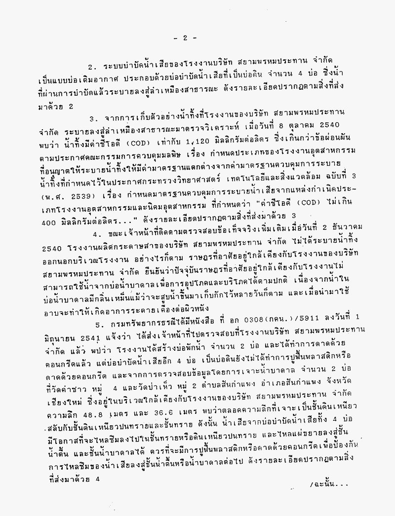 รายงานผลการพิจารณาศึกษาปัญหาความเดือดร้อนของราษฎรอำเภอสันกำแพง จังหวัดเชียงใหม่ จากการปล่อยน้ำเสียของโรงงานบริษัท สยามพรหมประทาน จำกัด ซึ่งคณะกรรมาธิการการทรัพยากรธรรมชาติและสิ่งแวดล้อมพิจารณาเสร็จแล้ว