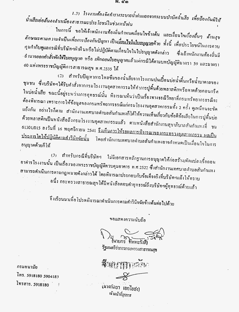 รายงานผลการพิจารณาศึกษาปัญหาความเดือดร้อนของราษฎรอำเภอสันกำแพง จังหวัดเชียงใหม่ จากการปล่อยน้ำเสียของโรงงานบริษัท สยามพรหมประทาน จำกัด ซึ่งคณะกรรมาธิการการทรัพยากรธรรมชาติและสิ่งแวดล้อมพิจารณาเสร็จแล้ว