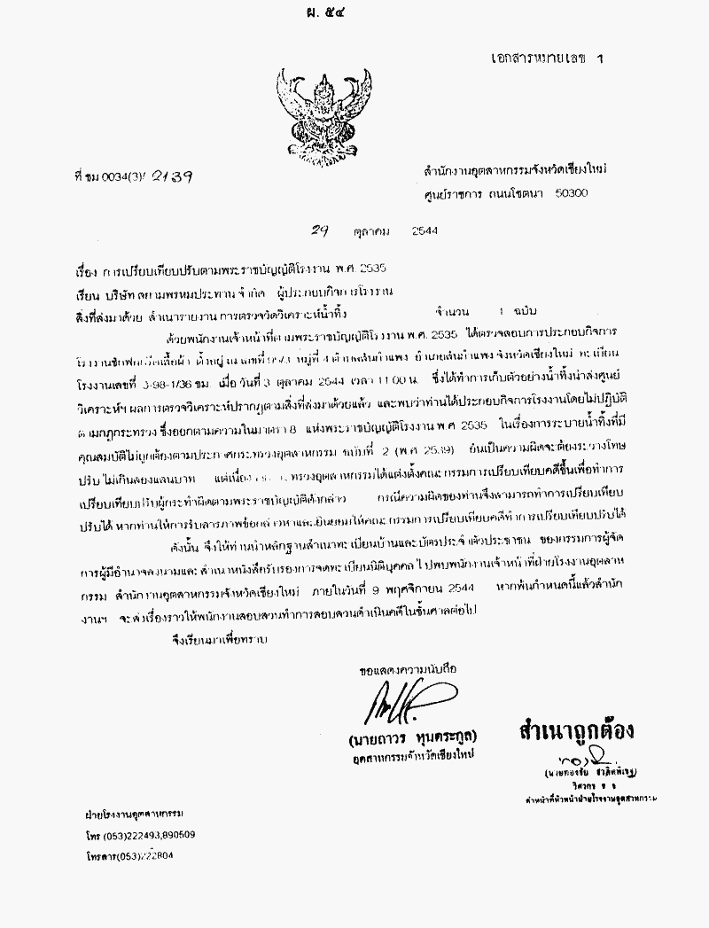 รายงานผลการพิจารณาศึกษาปัญหาความเดือดร้อนของราษฎรอำเภอสันกำแพง จังหวัดเชียงใหม่ จากการปล่อยน้ำเสียของโรงงานบริษัท สยามพรหมประทาน จำกัด ซึ่งคณะกรรมาธิการการทรัพยากรธรรมชาติและสิ่งแวดล้อมพิจารณาเสร็จแล้ว