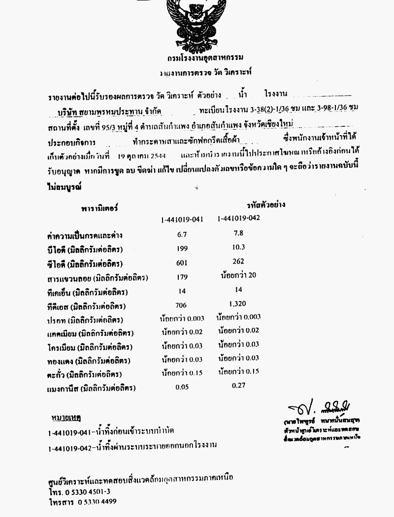 รายงานผลการพิจารณาศึกษาปัญหาความเดือดร้อนของราษฎรอำเภอสันกำแพง จังหวัดเชียงใหม่ จากการปล่อยน้ำเสียของโรงงานบริษัท สยามพรหมประทาน จำกัด ซึ่งคณะกรรมาธิการการทรัพยากรธรรมชาติและสิ่งแวดล้อมพิจารณาเสร็จแล้ว