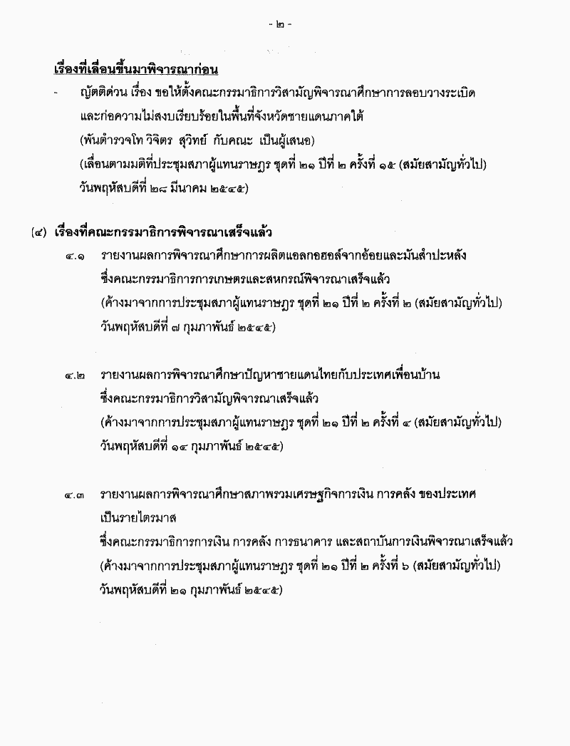 ระเบียบวาระการประชุมสภาผู้แทนราษฎร > ชุดที่ 21 > ปีที่ 2 > สมัยสามัญทั่วไป > ครั้งที่ 20