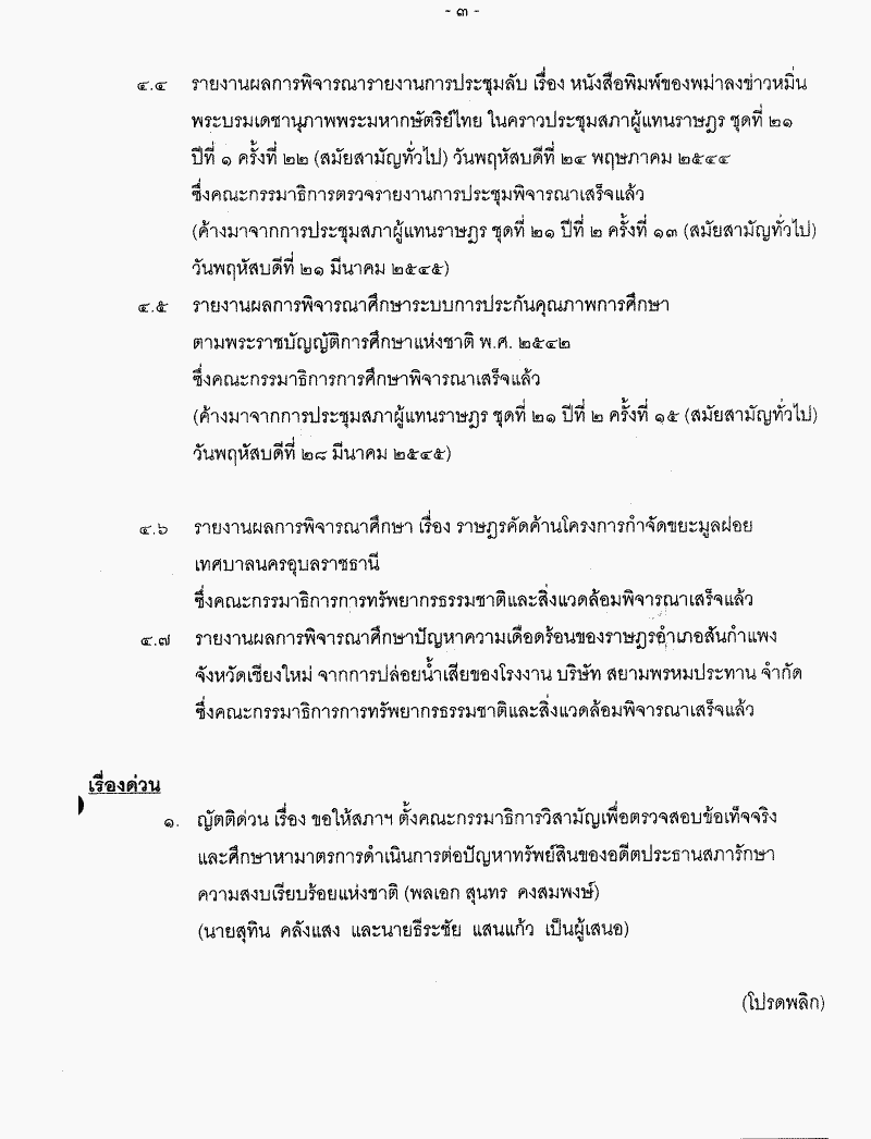 ระเบียบวาระการประชุมสภาผู้แทนราษฎร > ชุดที่ 21 > ปีที่ 2 > สมัยสามัญทั่วไป > ครั้งที่ 20