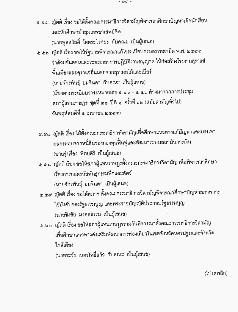 ระเบียบวาระการประชุมสภาผู้แทนราษฎร > ชุดที่ 21 > ปีที่ 2 > สมัยสามัญทั่วไป > ครั้งที่ 20
