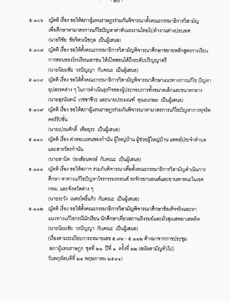 ระเบียบวาระการประชุมสภาผู้แทนราษฎร > ชุดที่ 21 > ปีที่ 2 > สมัยสามัญทั่วไป > ครั้งที่ 20