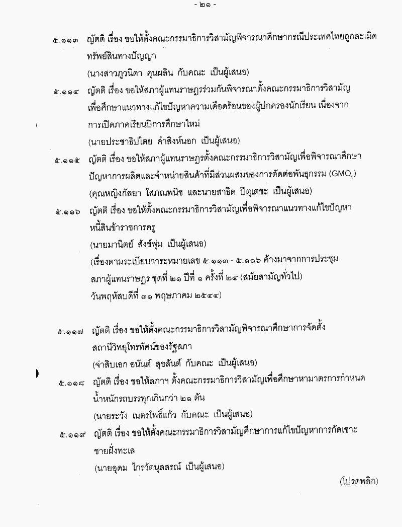 ระเบียบวาระการประชุมสภาผู้แทนราษฎร > ชุดที่ 21 > ปีที่ 2 > สมัยสามัญทั่วไป > ครั้งที่ 20