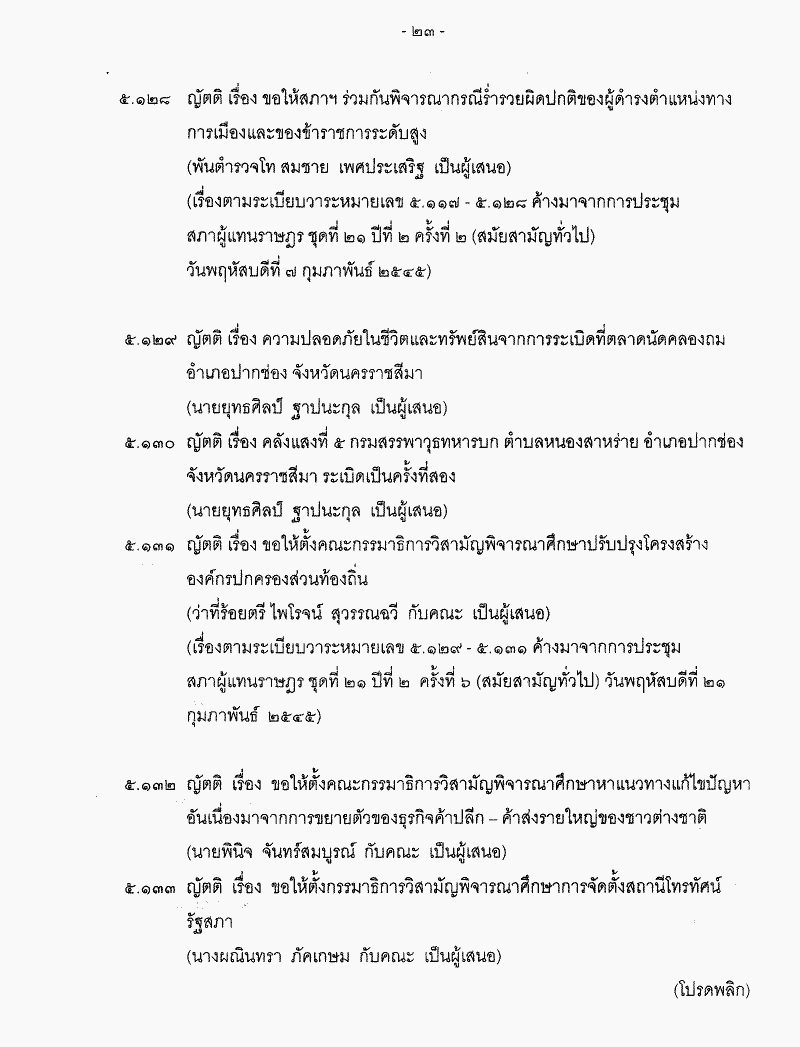 ระเบียบวาระการประชุมสภาผู้แทนราษฎร > ชุดที่ 21 > ปีที่ 2 > สมัยสามัญทั่วไป > ครั้งที่ 20