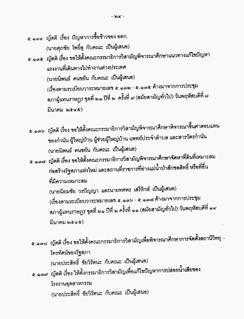 ระเบียบวาระการประชุมสภาผู้แทนราษฎร ชุดที่ 21 ปีที่ 2 ครั้งที่ 20 (สมัยสามัญทั่วไป) วันพฤหัสบดีที่ 25 เมษายน 2545