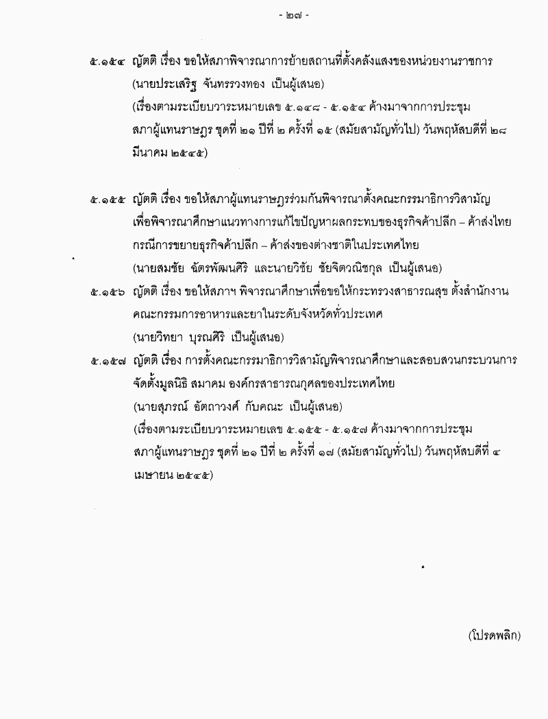 ระเบียบวาระการประชุมสภาผู้แทนราษฎร > ชุดที่ 21 > ปีที่ 2 > สมัยสามัญทั่วไป > ครั้งที่ 20