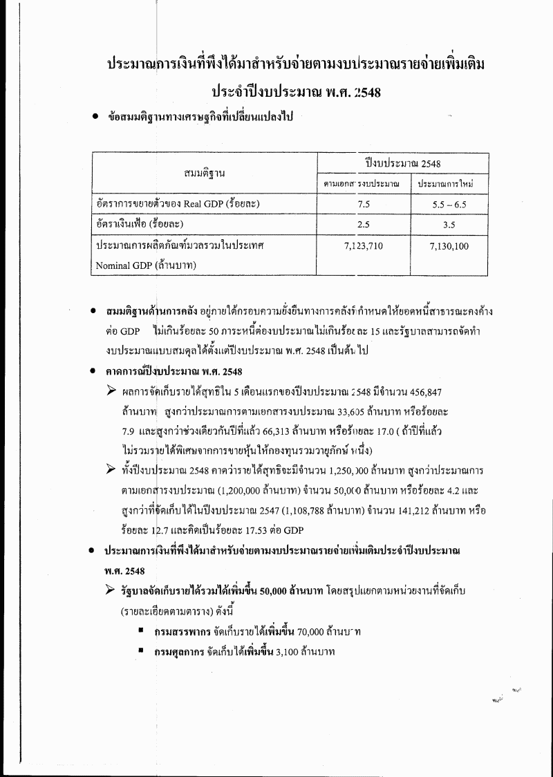 ชื่อเอกสาร :   ร่างพระราชบัญญัติงบประมาณรายจ่ายเพิ่มเติมประจำปีงบประมาณ พ.ศ. ๒๕๔๘ พ.ศ. ....