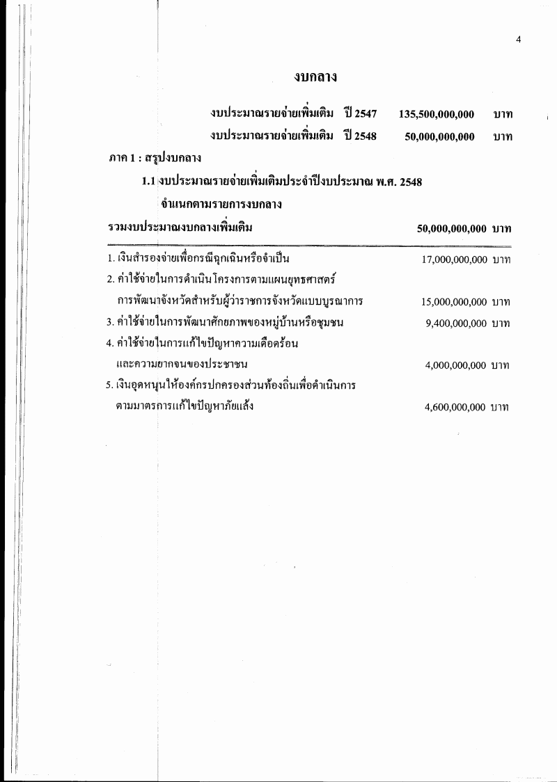 ชื่อเอกสาร :   ร่างพระราชบัญญัติงบประมาณรายจ่ายเพิ่มเติมประจำปีงบประมาณ พ.ศ. ๒๕๔๘ พ.ศ. ....