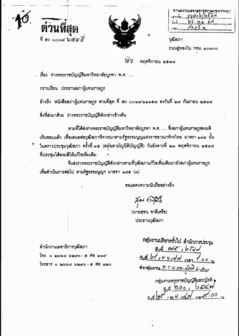 ๑.๑ ร่างพระราชบัญญัติมหาวิทยาลัยบูรพา พ.ศ. ....