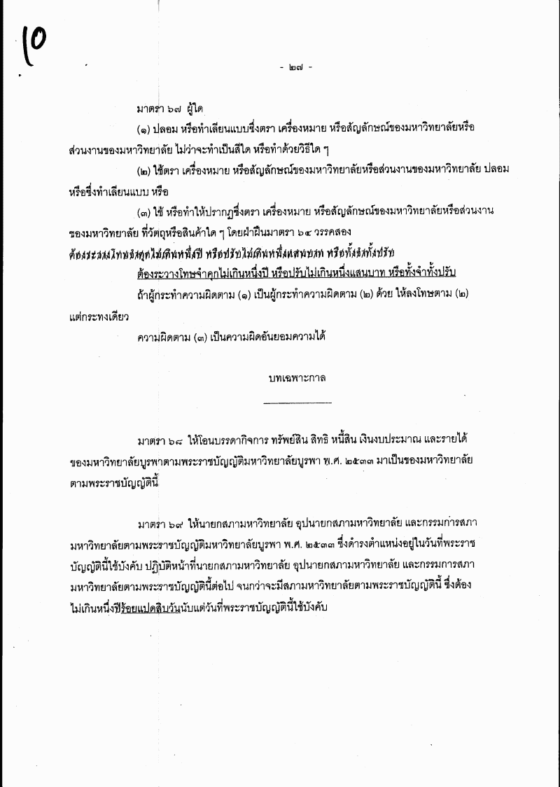 ๑.๑ ร่างพระราชบัญญัติมหาวิทยาลัยบูรพา พ.ศ. ....