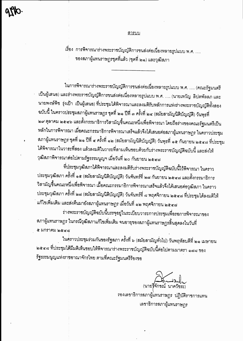๑.๒ ร่างพระราชบัญญัติการขนส่งต่อเนื่องหลายรูปแบบ พ.ศ. ....