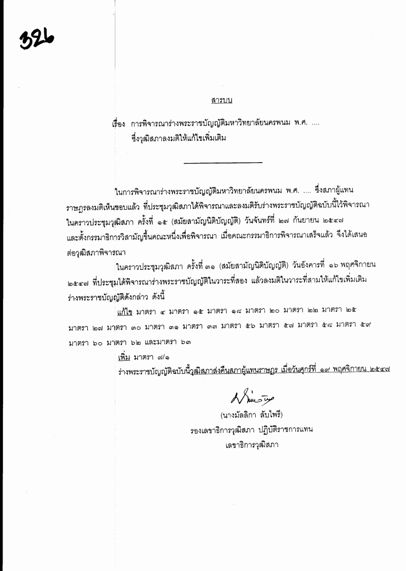 ๑.๔ ร่างพระราชบัญญัติมหาวิทยาลัยมครพนม พ.ศ. ....
